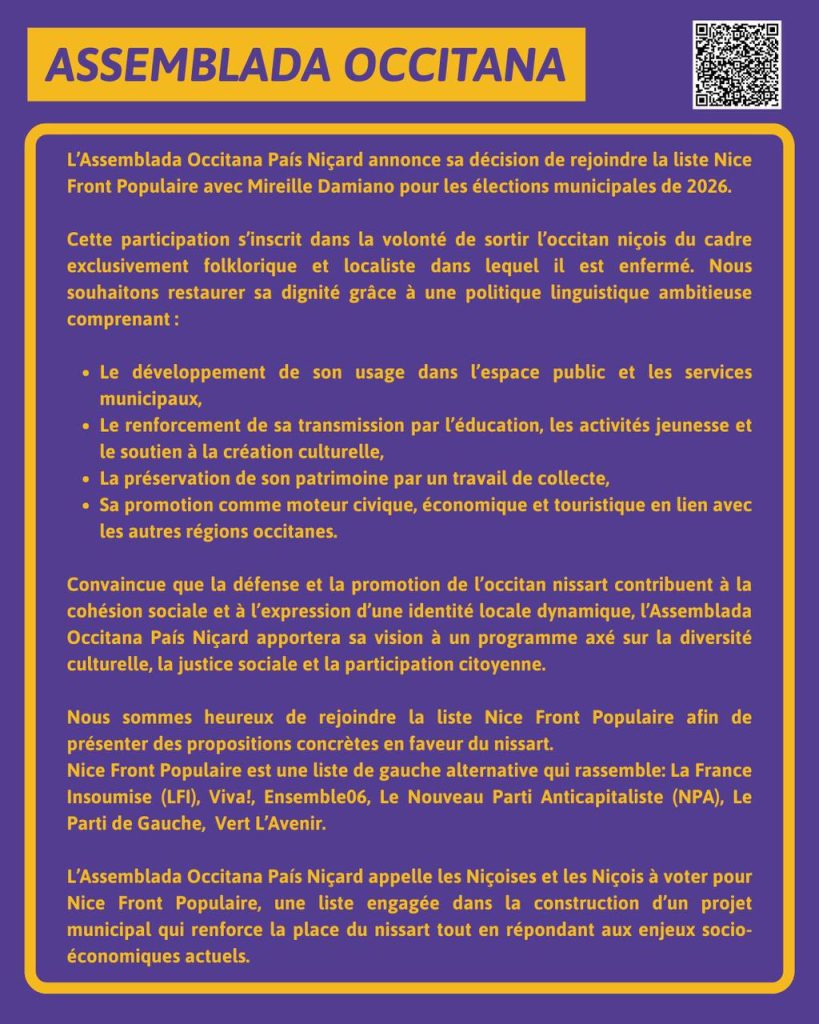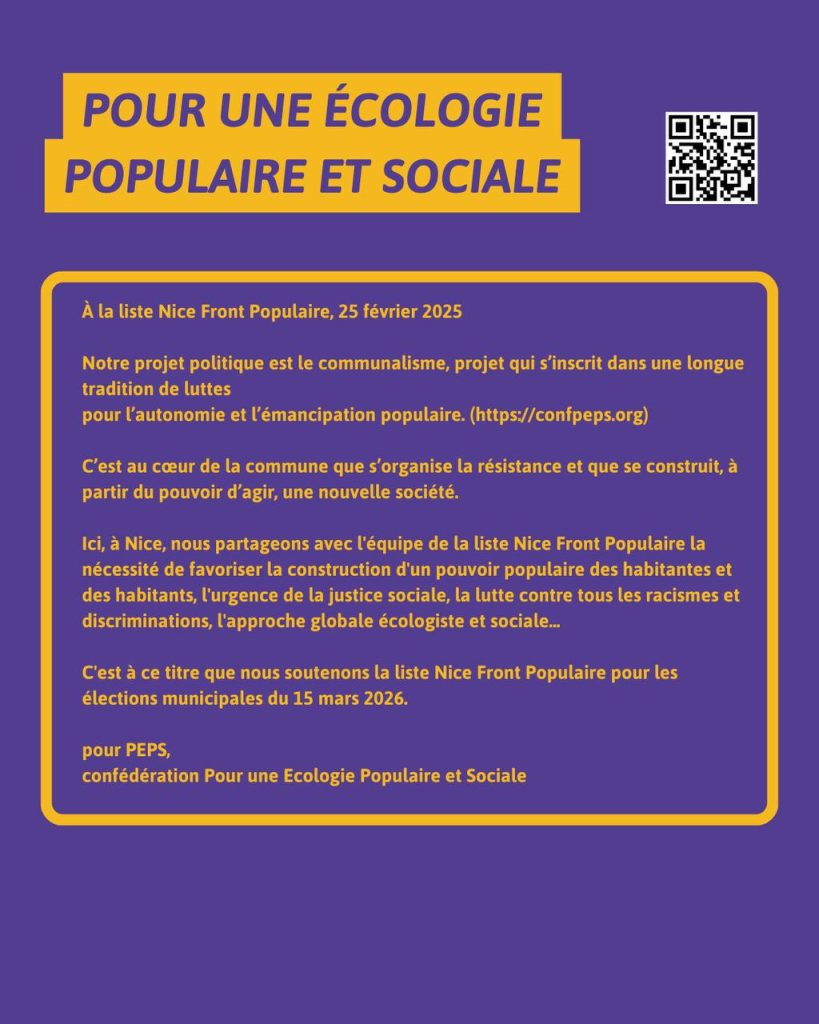 PEPS et Assemblada Occitana soutiennent la liste Nice Front Populaire